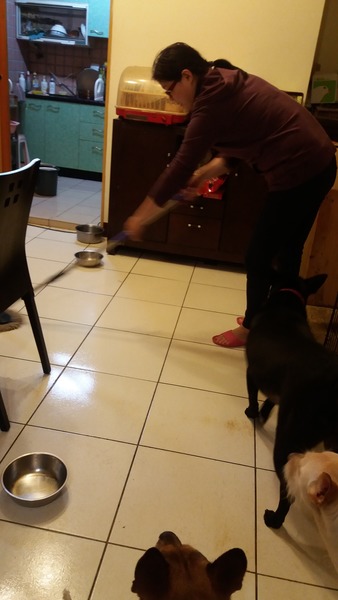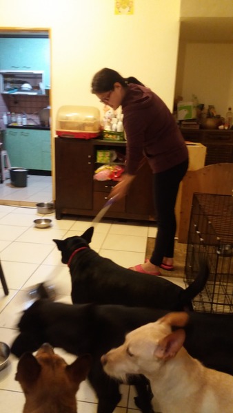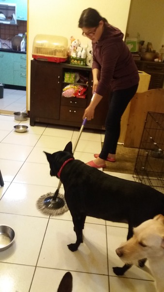 在拖的時候,我的毛孩,紛紛的來湊鬧,似乎是非常喜歡這次的清潔劑的味道哦!