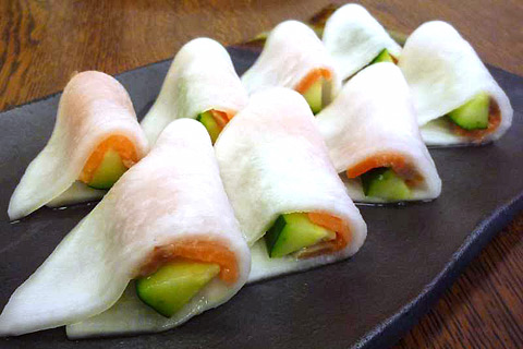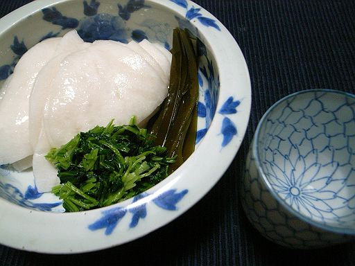 在過去,切片蘿蔔Syougoin,除去多餘的水,然後醃製,讓乳酸發酵製成醃菜,只有海藻與自然蘿蔔甜味,酸乳發酵海帶是平衡的風味泡菜,第二次世界大戰後,用糖,醋,調味製造,是今天醃製的千枚漬。