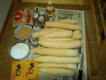 ・材料を全部混ぜ合わせて大根を漬ける。