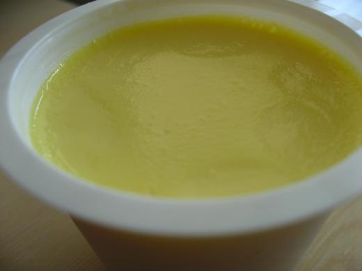 布丁小小的一個個頭不會很碩大,打開之後是很漂亮的奶油黃,而且光看表面就覺得口感很細緻,因為一點氣泡的毛細孔洞都沒有,美的咧!