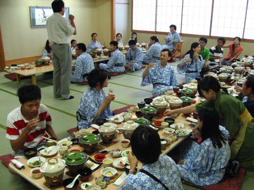 吃飯時我妹發現她沒有飯,我們想說也許是服務人員忘了,加上我妹本來飯就吃得少所以我就分了一半飯給她,後來吃到一半我發現我的左手邊有一碗我根本沒去動過的東西,一打開赫然發現是白米飯耶~~~哦~~天啊~~~原來日本人習慣把白飯放在左手邊可是我習慣去拿右手邊的飯,結果每一個人的飯都是放在左邊,我拿到的是我妹妹的飯,難怪她沒飯吃~~~哈哈