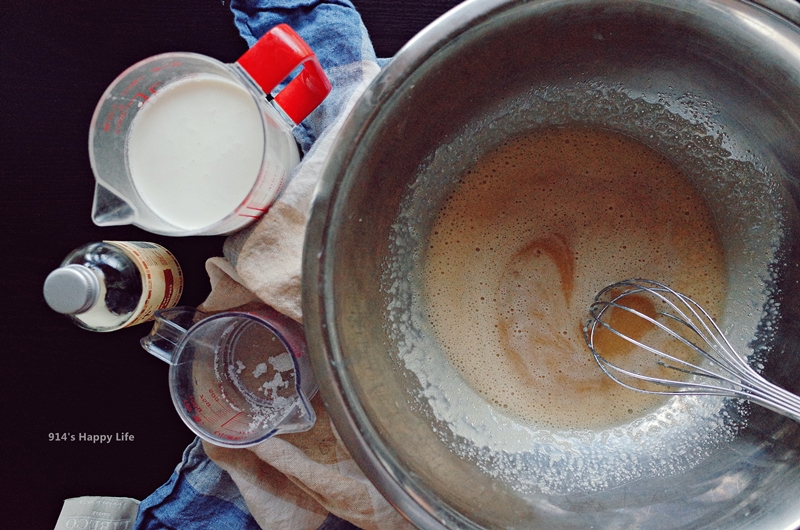 在轉火開始煮焦糖後,就立刻準備起布丁的部分。