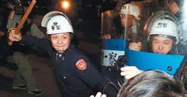 我好生氣,我對著警察的臉大喊訴求「退回服貿」,這時一名員警轉身拿警棍對我衝過來。他操台語對我說;「幹你娘,你在講看看,我打給你死。」