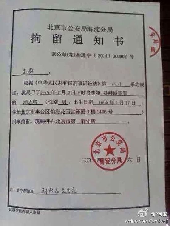 據最新消息,中國知名人權律師浦志強以“涉嫌尋釁滋事罪”,被海淀區公安局刑事拘留,現關押在北京市第一看守所。