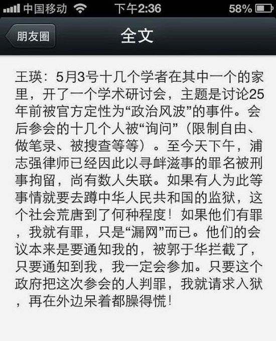 中國真是好啊!! 知名人權律師"浦志強"在北京因參加六四研討會遭逮捕