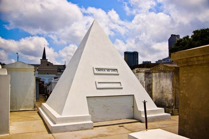 2010年,尼可拉斯凱吉設法以他的名字在公墓購置了一塊地,然後建了一個高達九英呎(約2.7米)金字塔型「超級墓」,上面寫有拉丁文格言「Omnia Ab Uno」,翻譯過來是「一切盡在掌握」的意思。