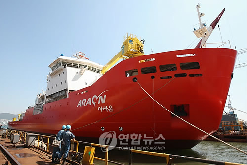 韓國第一艘破冰研究船「ARAON號」於本月11日在釜山韓進重工影島造船所舉行的下水儀式上威嚴亮相。尤其當天還是國家航天開發項目歷時10年的羅老航天中心竣工日,對韓國科學界來說具有深遠意義。