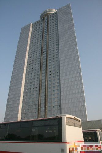 硬件與軟件的脫節還表現在電梯上面。大樓裡有8個供客人使用的電梯,如果你在不同的樓層裡需要上或下的話,必須來回跑動以最快的速度,將8個電梯的上或下的按紐都按下時,才有可能在最短的時間內找到你所要上或下的電梯。不像國內的電梯,你只要按一個上行鍵或下行鍵,即可以搞定。電梯的運行速度看似很快,但由於不知道哪層樓的客人同時按了很多上或下的鍵,這樣一來,速度反而慢了很多。我還發現,8個電梯中有2個聲音很大且十分笨重,上下都有一種失重感,酒店的服務生說,那兩個電梯是「北韓造」。