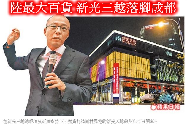 編按 : 我查過新光三越成都落腳地點在成都溫江郫縣, 那個鳥地方算是城鄉結合地區, 在中國長時間待過的都知道啥叫"城鄉結合部", 新光在那種地方開高檔百貨公司簡直是國際大笑話!!