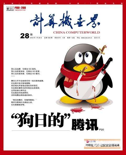 「360安全衛士、暴風影音的裝機量都已經上億了,如果周鴻禕或者馮鑫有一天跟新浪合作,也推新聞彈出框,馬化騰不就郁悶了?」蔣濤認為,騰訊的產品策略之一就是:所有的互聯網應用,只要用戶量到了一定級別,騰訊一定要有,別人的產品可以暫時比騰訊做得好,但騰訊絕不會讓它不可替代。