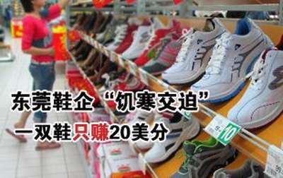 森威鞋廠總經理楊永清對此有深刻的體會。他是1996年從台灣到東莞,十幾年間利潤逐漸被「削薄」。3年前,一雙皮鞋上可賺1美元左右,現在只剩下20美分(約1.3元人民幣)左右,而一雙鞋子成本就要投入120元人民幣左右,利潤率大約只有1%,一不留神還可能虧損。