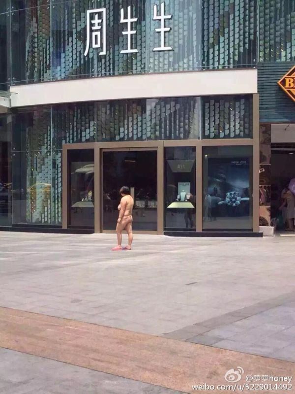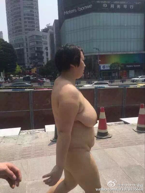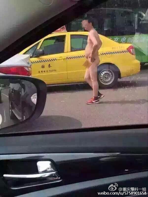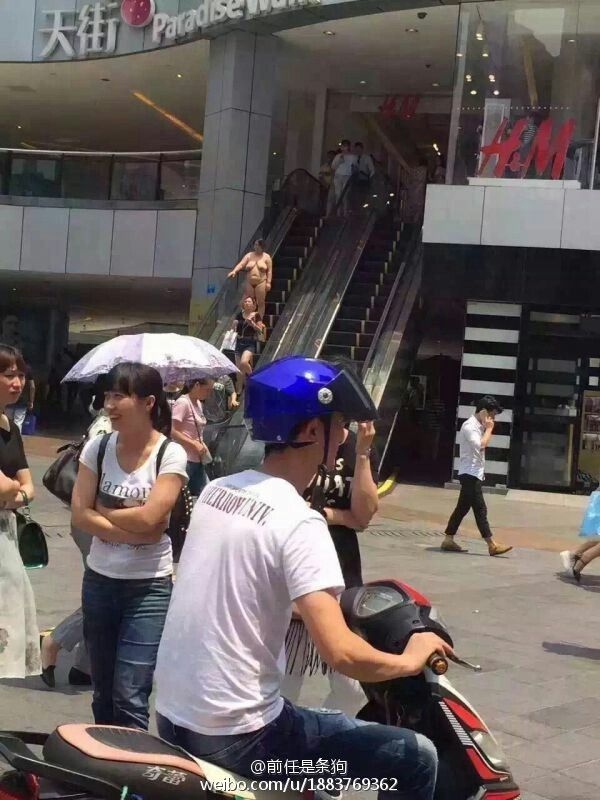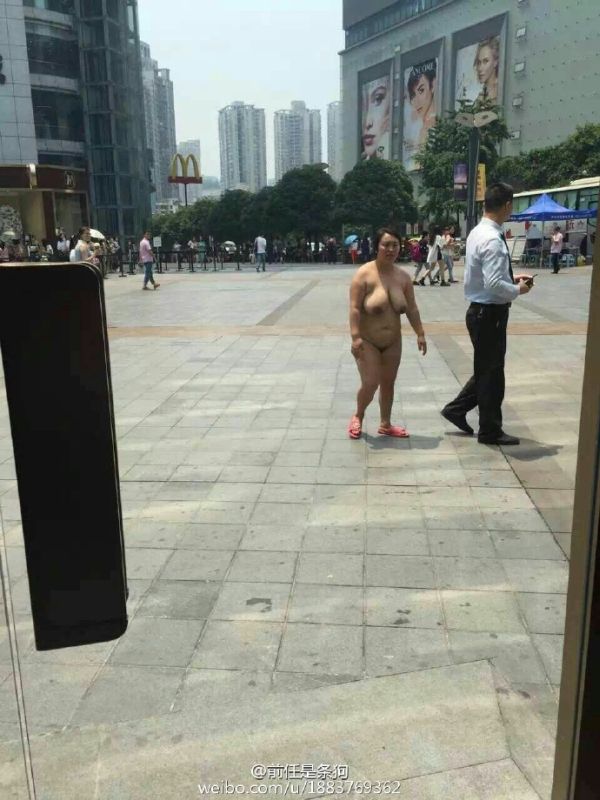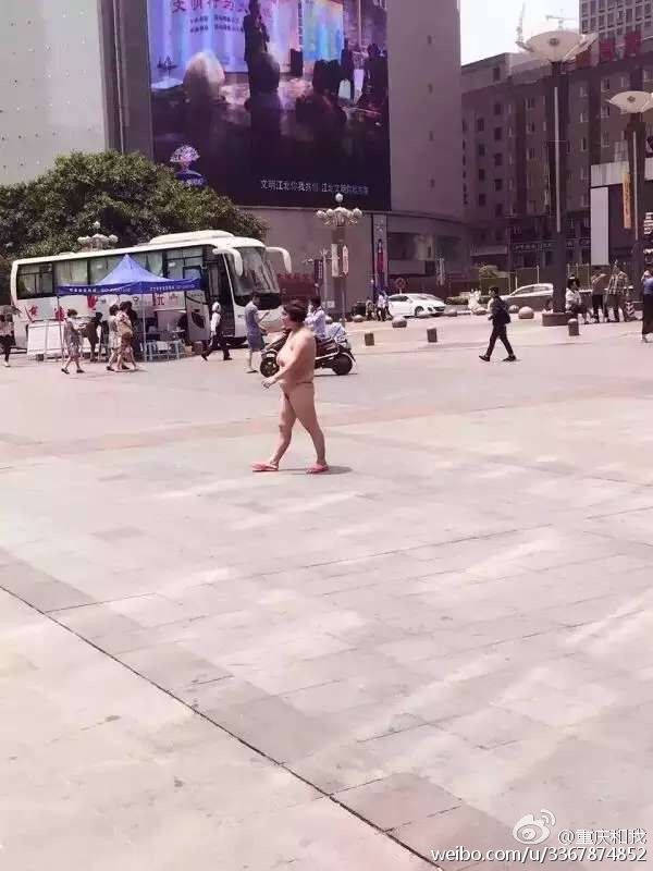 天氣太熱了!重慶觀音橋一女子裸奔出行 (2016.05.05)