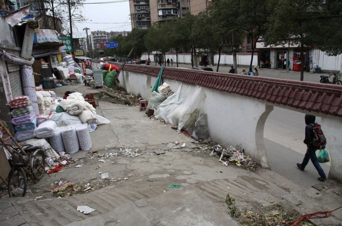 據了解,武漢麒麟路一直存在攤販佔道,車輛亂停的情況,為了美化環境,2010年底城市管理部門開始在馬路兩旁砌上圍牆。自打這堵牆建起後,牆內的垃圾、亂搭亂建、攤販佔道、車輛亂停就少人過問了。該牆也被市民斥為「遮羞牆」。