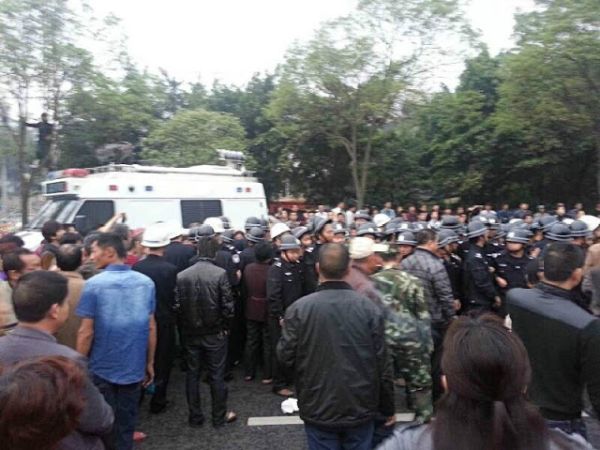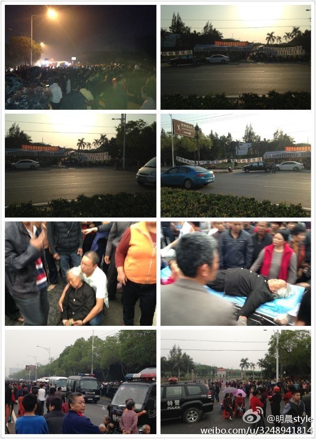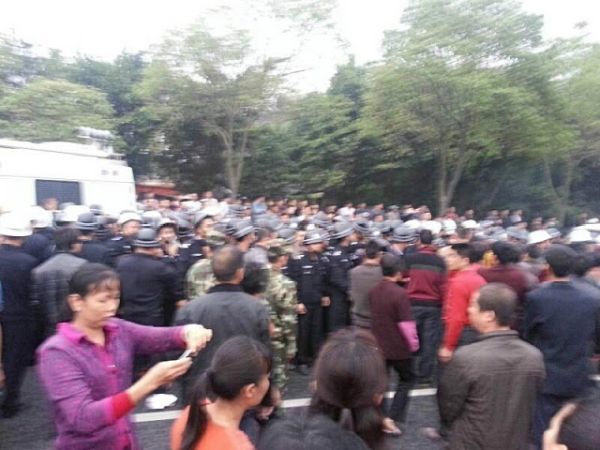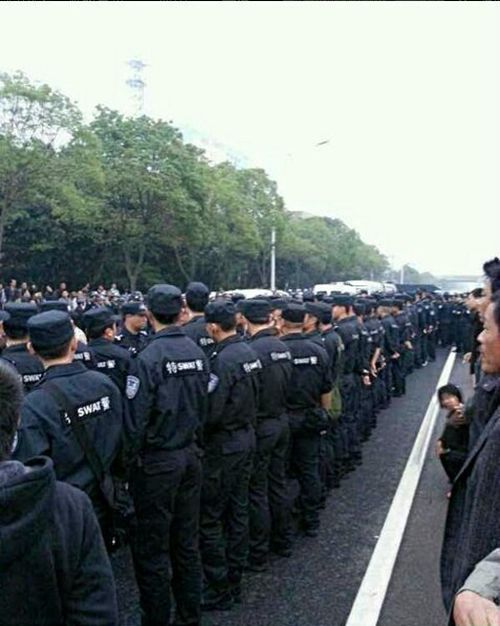 福建廈門市同安區潘塗村村民,因土地被村官變賣,已持續靜坐維權一個多月。4月25日,當地政府派出數百武警、特警強行清場遭到村民反擊,多輛警車被砸或扎胎放氣,同安區委書記陳琛被村民扒光衣服。