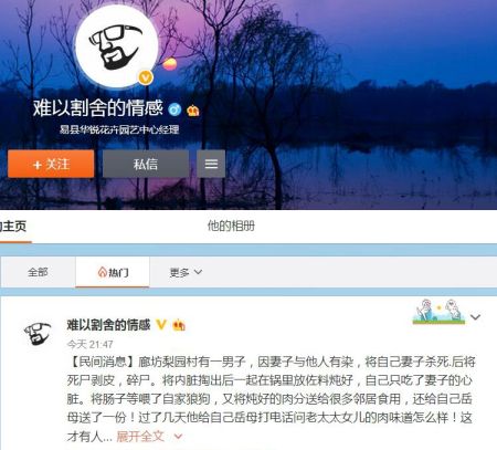2016年10月9日晚上9點47分,新浪微博名為「難以割捨的情感」的博主,對外發佈了一條「民間消息」。