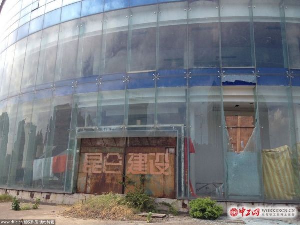 盡管外觀還算氣派,但走入卻發現只是“金玉其外”,大樓大門緊閉,周邊隨處可見破碎的磚塊,雜草叢生。