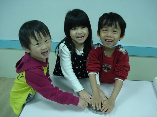 本週我們進行科學課程,透過實驗一起觀察水的三態變化,準備好冰塊要開始囉!孩子們摸到冰塊都異口同聲說好冰喔,幾位孩子馬上聯想到雪,覺得跟下雪冷一樣呢!