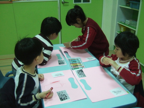 每位孩子們都很認真的思考並動手將出國必帶的物品畫在行李箱內,有些孩子怕太陽很大所以帶了一副太陽眼鏡,有些孩子則帶水壺、手機、照相機…等,凌君老師提醒大家最重要的護照、機票及迪士尼的門票都要記得「裝」進行李箱裡面喔!