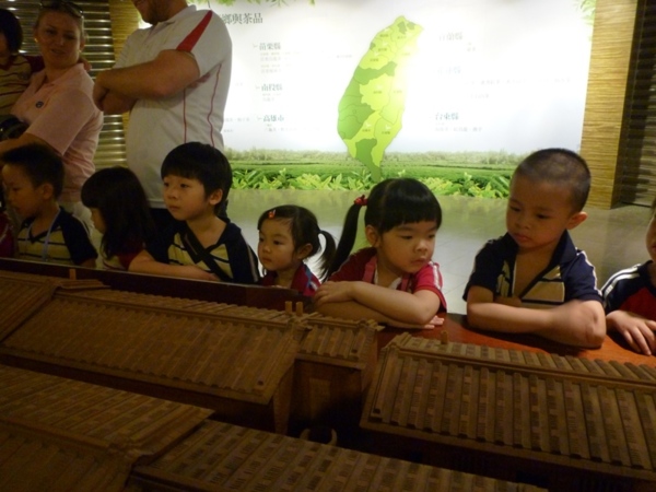 每次的校外教學,寶貝們總是帶著無以倫比的好心情,在出發路上,大家也滿是期待與笑容,一片歡樂融融的氣氛!到達客家文化主題館後,由親切的「徐老師」帶領大家進行館內導覽,從一樓充滿客家地方風情的著名景點介紹,到二樓欣賞客家傳統建築三合院、四合院的風貌以及採茶文化,最後一起上三樓參觀『客家衣飾美學特展』,在展覽場內,因為客家人的簡樸個性,所以我們看見的衣物大多是棉布製作的,「徐老師」還向大家介紹從傳統客家服飾袖口的袖花就可以辨識出已婚或未婚,有彩色袖花邊的是未婚,已婚的通常是素色袖花,是不是很特別又有趣呢!除了觀賞傳統衣物,場內也展示了許多製作衣服的工具,恰巧讓孩子們複習了在課程中所學的內容,有:裁縫機、熨斗、燙衣板、量尺、裁布剪刀等,大家看得又仔細又認真呢!