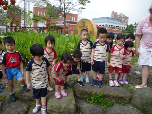 主題館外有一片空曠的綠地以及生態田園區,在豐富的知性之旅後,我們不辜負太陽公公的美意,讓孩子們恣意在草地上盡情地奔跑,看到大家小巧卻靈活追逐跳躍的身影以及聽到他們綿綿不斷的笑聲,我們也不自覺受到歡樂氣氛感染而發出了會心一笑!