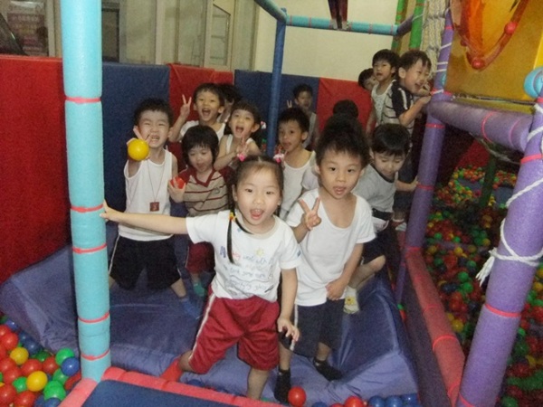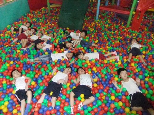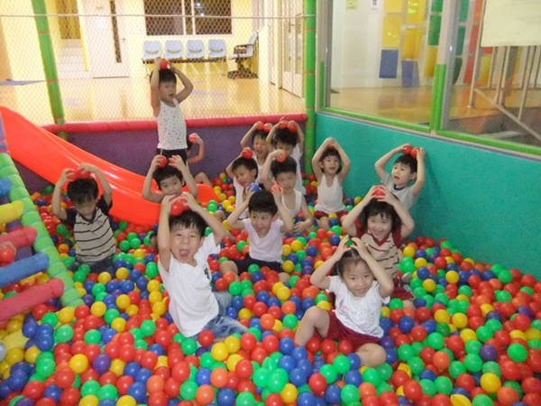 你們都學會了嗎?是不是很有趣呢?這是我們在球池樂園裡會一起唸唱的趣味歌謠喔!球池樂園裡不僅能增加我們對顏色、形狀及數量的認識,在球池內玩翻滾遊戲的同時亦能增加身體各個部位的觸覺刺激以及動作協調反應唷!