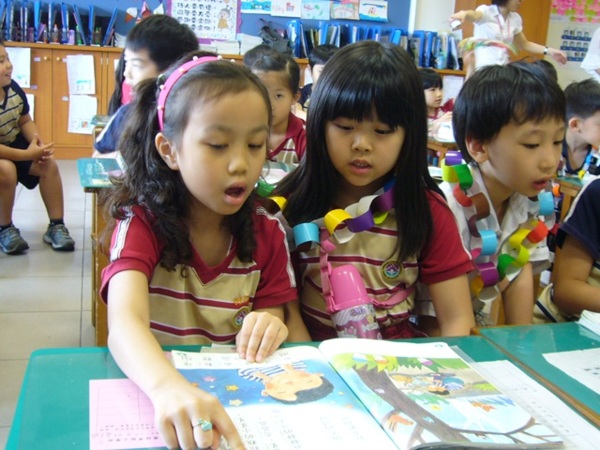 一下車,迎接我們的是笑容可掬的老師,她詳細的說明今天的活動流程,還帶著大家進到教室裡,坐在哥哥姐姐旁邊一起上課;而原本感到緊張的孩子們,在老師和哥哥姐姐的引導下,逐漸化解心中的焦慮,開心的唸讀課文、欣賞教學影片,甚至和哥哥姐姐聊起天來了呢!