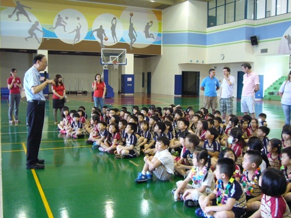 接著大夥兒來到了體育館,許校長親切的和大家問好,還送給每位小朋友一份小禮物,再加上老師們帶來的律動唱跳、生態體驗,讓大家的心情high到最高點!