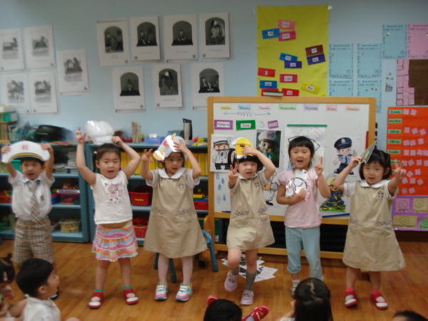 廚師、郵差、警察、醫生、護士、消防員,這些職業都是與我們息息相關的,這些職業你們都看過,孩子們也不例外,聰明的他們一眼就能認出,但其中加入英文字彙,對他們來說是一個不小的挑戰,但他們也都一一克服。