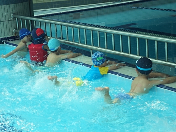 在康橋,小朋友整年有游泳的課程,在這樣寸土寸金的都市裡,還能在幼兒園裡看到游泳池,我們的寶貝們真的很幸福。趁著遊泳課程的機會,我們決定要好好記錄star班的童年生活。