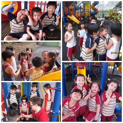 在R1,Spring班的孩子們在暖身操後的活動分成兩階段: