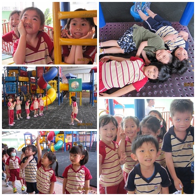 第一階段,以報數分組,奇數(1/3/5/7/9)一組、偶數(2/4/6/8/10)一組,分組進行體能探索活動,或盪鞦韆或玩滑梯、攀岩等等,搭黨不同的伙伴,用不一樣的方式學習「玩」的技巧;鞦韆上,男孩說:「小時候我以為是地球在搖,現在知道其實是我在搖」,女孩告訴老師:「I like to play on the swing」、「Because I like to fly 」,鞦韆上的風吹著,青春的話語飛著、飛著…