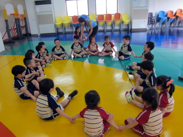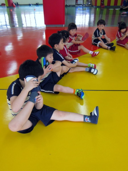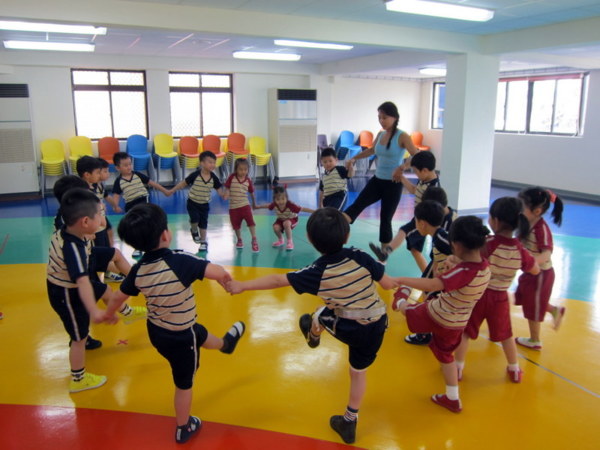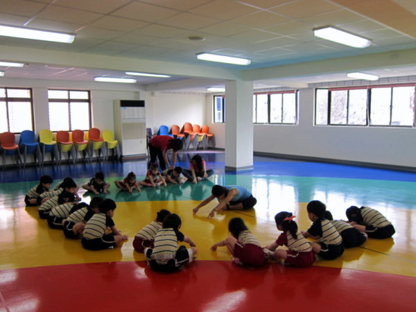 一會兒擺動身體做律動,一會兒跟著音樂玩遊戲,每位孩子都玩得不亦樂乎,笑的合不攏嘴呢!但是動態遊戲後,可別忘了要讓身體沉澱一下,現在趕緊閉上雙眼,用你的感官來感受一下四周的變化,找找看瑜珈老師在誰的身後吧!
