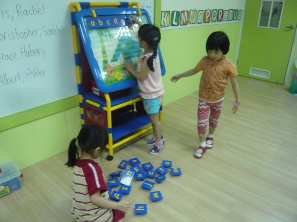Teacher Raphael告訴大家接下來每一隊員輪流出列,將散置在地上的26個字母,依順序排列,當然,Teacher Raphael會幫每一隊計時。最後,看哪一隊花的時間最少,就是獲勝的隊伍。