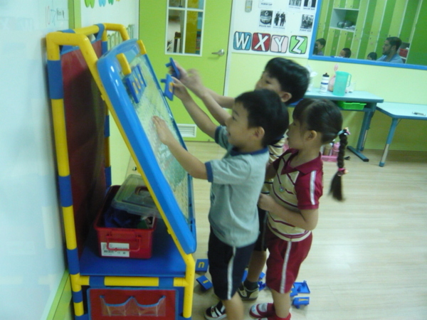 A, B, C, D, E, F, G….., Y, Z這是大家耳熟能詳的歌曲,今天的課程我們要做不同變化喔! Teacher Raphael將全班分為六隊,再選出六個隊的隊長,由隊長來想一個隊名。接著,隊長來選隊員。在選拔隊員的過程中,每位孩子都很冷靜,有的隊長選的是自己的好朋友,有的隊長選的是與自己同桌的小朋友。