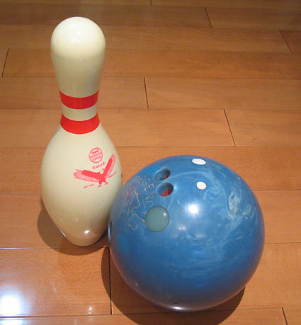 (上圖:放在家中的球瓶和顆球,另一顆球和球具放在球館。)