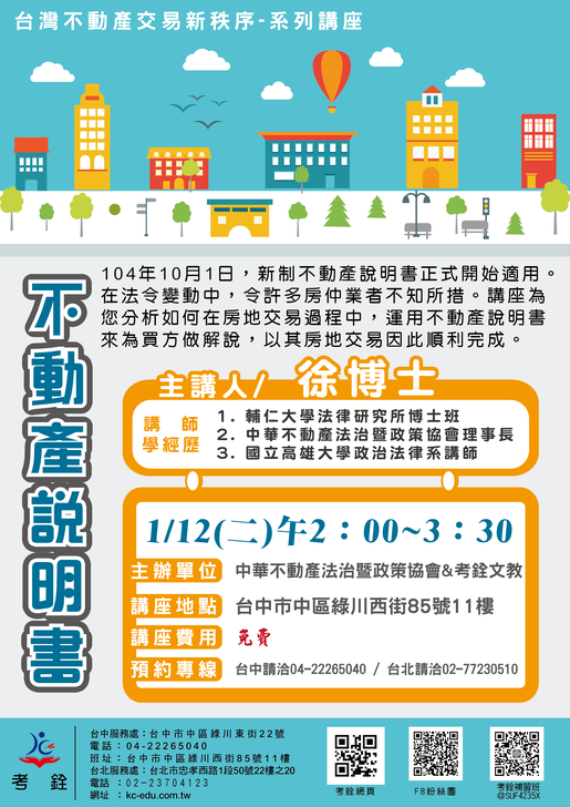 [實務講座]台灣不動產交易新秩序-系列講座-【不動產說明書講座】