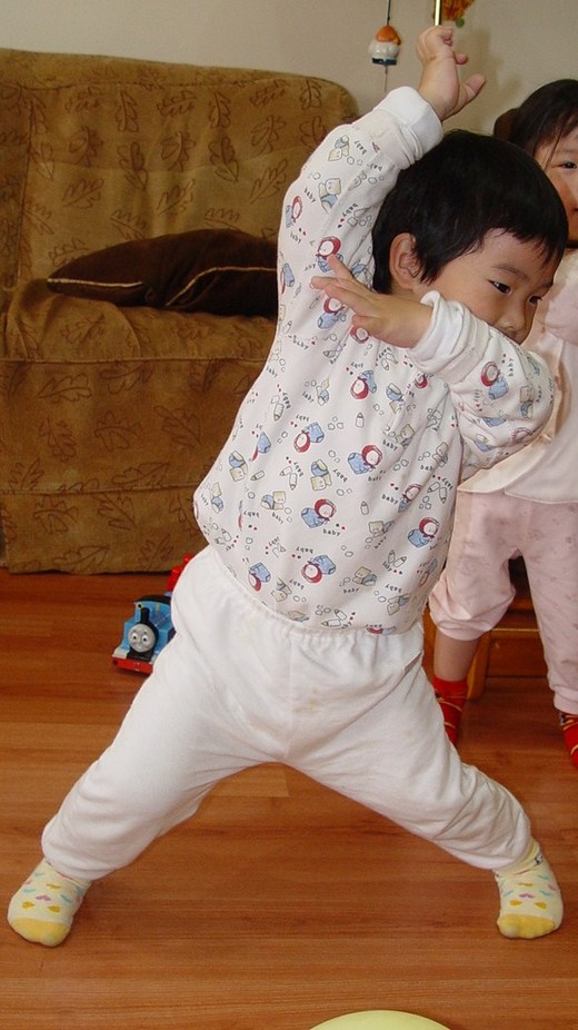 起來,也會模仿帶動唱的動作.甚至,有時會