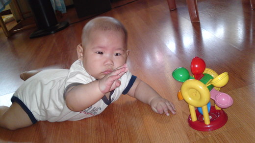 彥羲不到六個月就自己摸索出如何使用雙手及配合腳往前爬行
