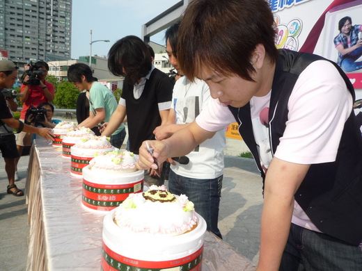 「五月天」的主唱阿信5月3日到高雄市為漢神巨 蛋百貨公司代言時,和團員一起彩繪義賣的蛋糕,他說要畫一個微笑的臉。他先用黃色的奶油(看起來是)「打底」,再用巧克力畫上眼睛、微笑,畫完後,停下來,想一下,然後轉身走向宣傳人員問一句「我們下一次演唱會是什麼時候?」,「8月8日」,問到答案,把日期寫在蛋糕的笑臉旁。
