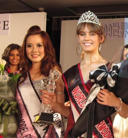 2009年世界旅遊皇后國際總決賽14日晚上在高雄選出,冠軍是波斯尼亞小姐(右),台灣小姐陳怡文(左)獲得亞軍,同時也被選為大立小姐。