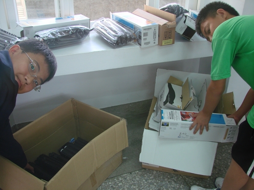 澎湖縣文光國中師生響應環保,主動蒐集全澎湖縣各機關學校及軍方不用的印表機碳粉匣,3年來總計回收上萬個,回收所得全數捐贈給心路基金會,發起人資訊組長吳嘉輝說,回收碳粉匣讓學生做環保又能行善,是最好的機會教學。