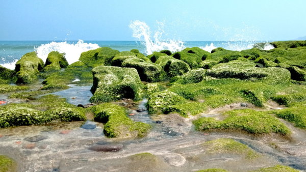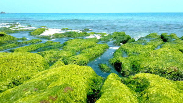 藍天碧海,綠藻石槽,療癒啊~