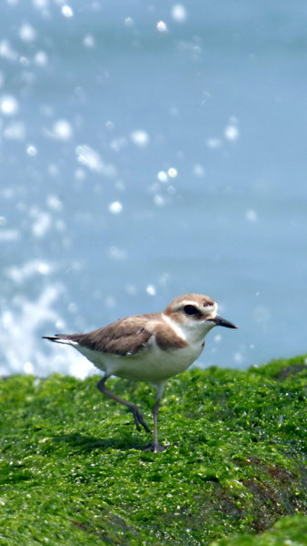 這一隻在浪邊跑來跑去的覓食,浪來了,牠也是跑給浪追,但也是被浪打到好幾次,不過牠似乎不甚在乎.