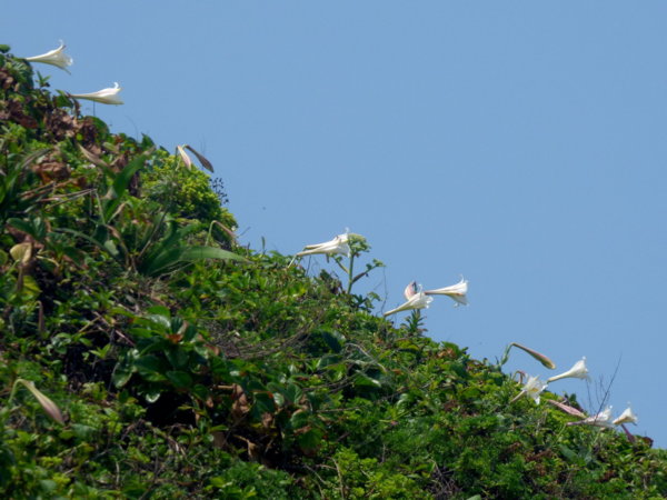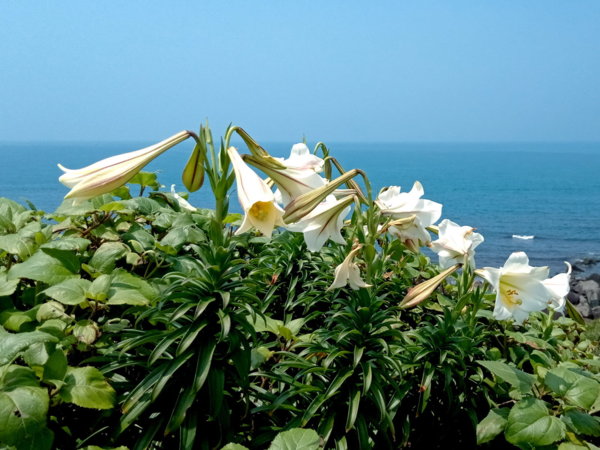 餐後開車到麟山鼻第二停車場,沿路走到伊莎貝拉海灘咖啡館,再下到海邊步道,走了一圈回來.今年馬路邊沒再種百合,而步道上的台灣野百合,不知是野草灌木太多還是其他原因,長得並不好,花開也不多,也或者時間未到,說不定這幾日花就盛開了,希望啊!