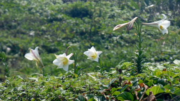 抬頭看山頭,已有不少野百合開放.