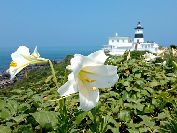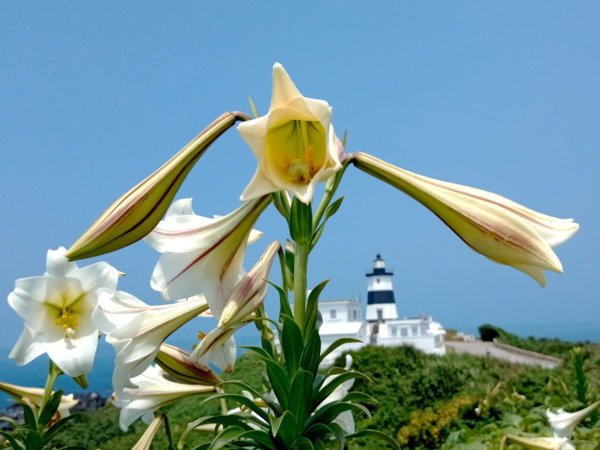走沒多遠,果然有些野百合在這兒開放,以前過燈塔後就沒什麼百合了,但去年就有幾株出現在這裡,剛好可以連燈塔一起拍進去,也是讓人開心的小確幸!