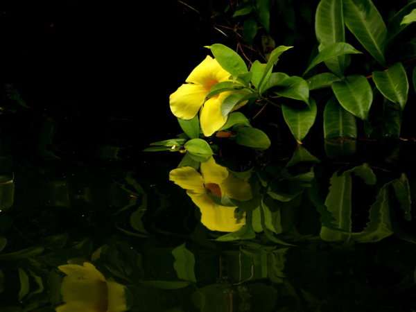 那池畔的軟枝黃蟬與池水相映,如夢似幻~