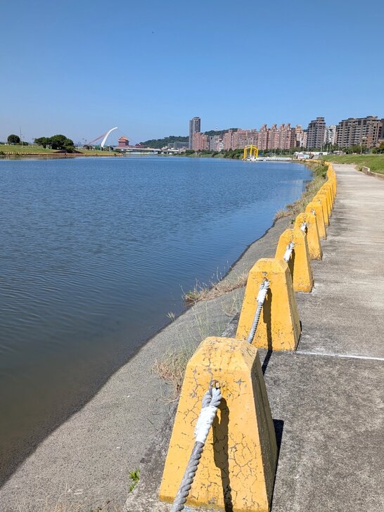 以為基隆河水是混黑的,沒想水還算清,河邊好多吳郭魚,清晰可見,有兩個小孩用蚯蚓在釣魚,問一下,說有釣到一斤的成仔丁,但吳郭魚都不吃餌.