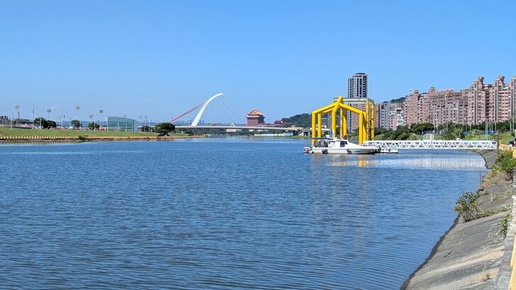 望向城市,堤邊是些美麗豪宅、公寓.↑