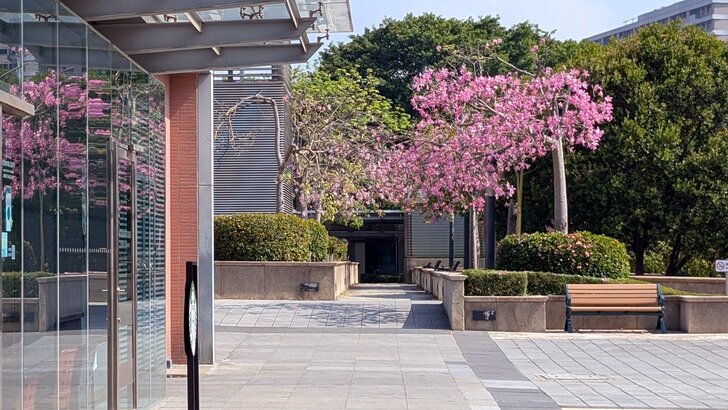 拍過桃捷後,回到站裡的超商補充茶水,再從1號出口,出去看東北邊的花園.↓